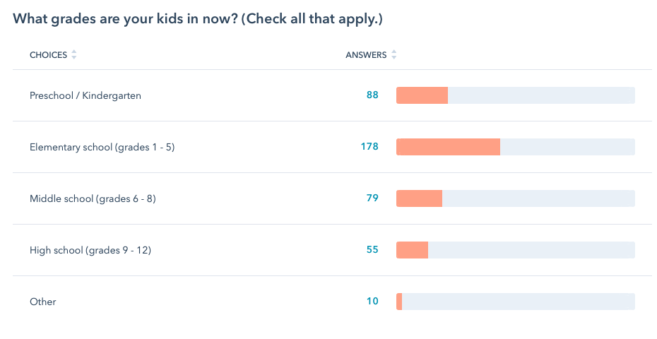 We wanted to get a sense of where families were at in their children’s education journey. The majority — 64% — had kids in elementary school, which we defined as grades 1-5. That was followed by kids in preschool or kindergarten at 32%, middle school (grades 6-8) at about 29% and high school at 20%. The remainder selected “other.”