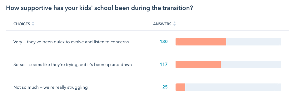 Some good news on this front. An overwhelming number of parents — almost 47% — say that their kid’s school has been very supportive and another 42% say their school is at least trying. Only 9% feel their school hasn’t been supportive at all.
