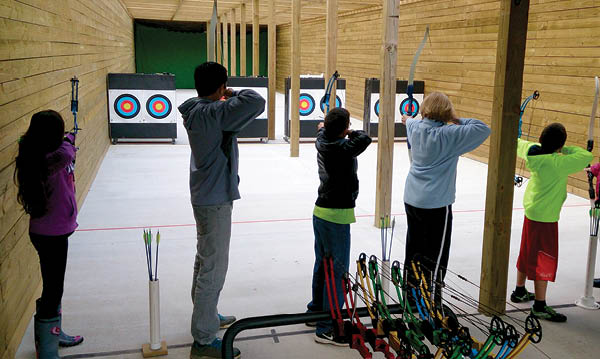 A trained range master is always on site to give advice and supervise techniques. And the archery range is fun for all ages, Farmer stresses. He says his own daughters, ages 10 and 9, started shooting arrows at age 5. “If they’re strong enough to hold the bow back,” they’re old enough to hone their archery skills.