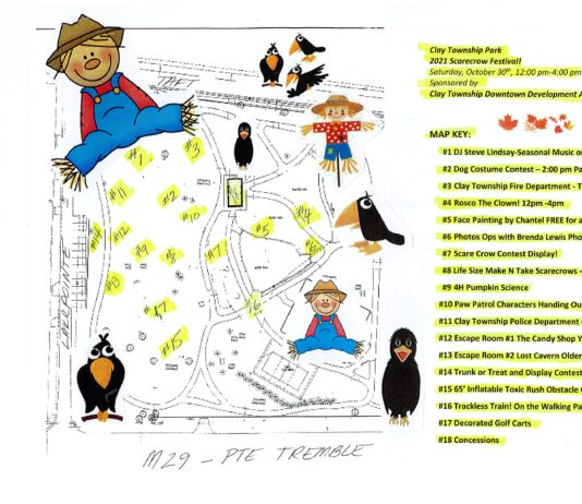 Paw Patrol will be on site with goodies for the kids, while DJ Steve Lindsay spins interactive seasonal music. Enjoy pumpkin science, dog costume contest and parade, free make n take scarecrows and scare crow contest, First Responders Trunk & Treat Challenge and inflatables. Sponsored by Clay Township Downtown...