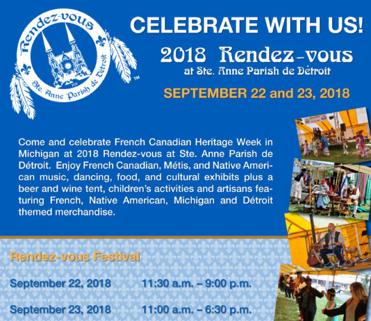 The Rendez-vous at Ste. Anne de Détroit is a French-Canadian and Native American cultural festival celebrating the founding heritages of Détroit, which kicks off French Canadian Heritage Week in Michigan.