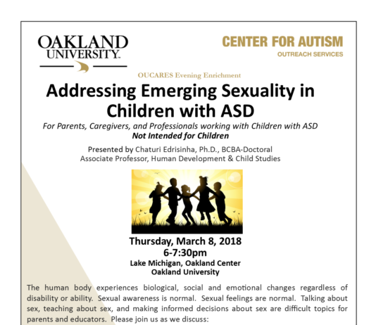 Lecture on Nurturing Your Romantic Relationship For Parents and Caregivers of People with ASD at Oakland University in Rochester