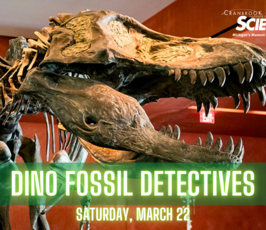 Families can join Cranbrook Institute of Science for a Dino Fossil Detectives family workshop. Activities include getting up close with real fossils, holding a mammoth tooth, shaking hands with a T. rex, creating fossil casts, taking home a fossil and more. For ages 6 and up. Registration required by...