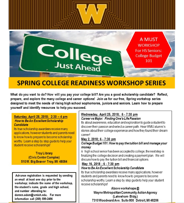 WMU in Metro Detroit Spring College Readiness Series at the Wayne Community Action Agency in Detroit