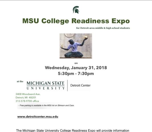The Michigan State University College Readiness Expo will provide information on pre-college summer enrichment & employment opportunities in 2018 for Detroit-area students in grades 6-12.