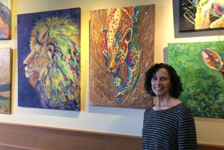Head to city hall to see Joan Sterling's solo exhibit of colorful lions and cape buffalo, titled, “Birds and Beasts.”