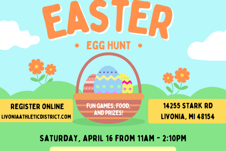 The Livonia Athletic District would like to invite you and your families to our first Easter event! Please bring your own Easter baskets and register on our website to secure your spot.