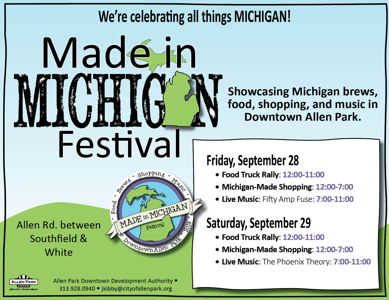 We’re celebrating all things Michigan, including brews, food, shopping and music in Downtown Allen Park.