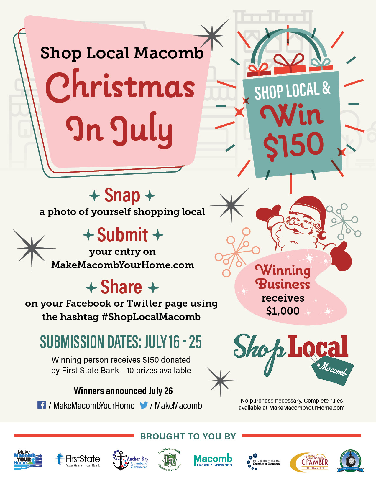 Participating in Macomb County’s Christmas in July is as simple as snapping a picture while shopping your favorite local businesses July 16-25, 2021.
