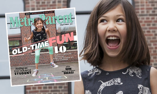 When’s the last time your kids played with sidewalk chalk and set up the driveway with a retro round of hopscotch? Leni, 10, of Ann Arbor definitely got her fair share of this cool game on the cover of the August 2015 edition of Metro Parent, which celebrates 10 awesome, almost-obsolete activities we think every kid should do this (and every!) summer.