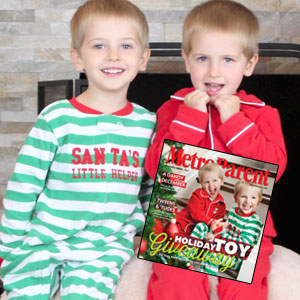 We assure you: We did not need to pose energetic siblings Caleb and Matthew, both 4, of Dearborn, for their big photo shoot for the December 2013 issue of Metro Parent. These twin brothers, who perfectly capture that pumped-up excitement of Christmas morning, were all tumbles, laughs and huge smiles – a pretty spot-on complement to our 2013 Holiday “It” List Gift Guide, jam-packed with 37 awesome toys and unique gifts sure to get any kid geared up.