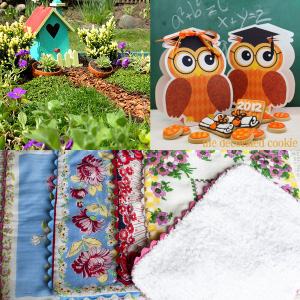 Here’s a sweet gift to take to the next baby shower you go to. Vintage hankies serve as the colorful backing for these sweet burp cloths.