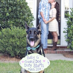 After all, pets are part of the family, so why not put Fido in the picture that announces that his family is growing. Have the “big sister” or “big brother” pose with a pregnancy book, a pair of baby shoes or a sign with your due date.