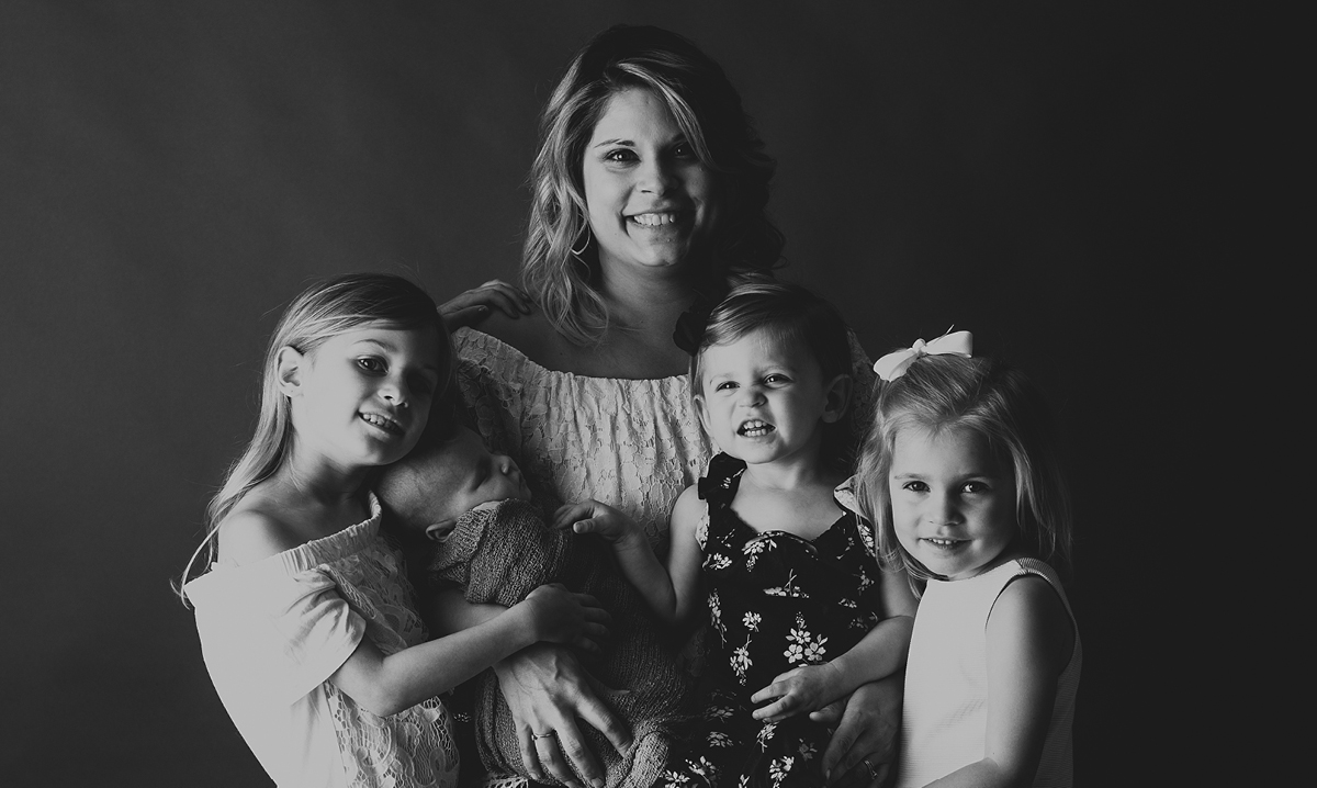“We found out the gender of our daughters before they were born and decided to wait with our fourth until the birth to find out the gender. We were beyond surprised that we had a baby boy to add to our family! My husband and I bought our five-bedroom home in 2012 and everyone joked that we needed to fill up all of the rooms. Well here we are just seven years later, and the inn is full.”