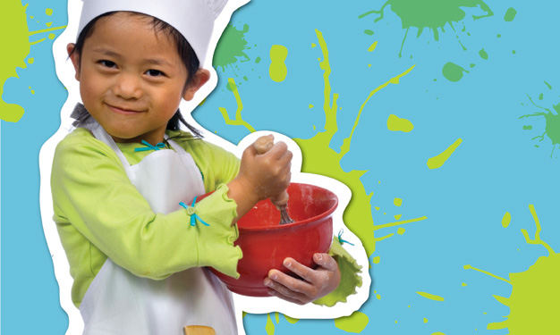 Developmentally, toddlers pose the toughest challenge for a cooking parent. Carol Williams, a clinical dietitian at Nationwide Children’s Hospital in Columbus, Ohio, advises, “Touch is a sense used to help get unfamiliar foods closer to a child’s mouth” – which means that your picky toddler may be more willing to eat your slaved-over meal by cooking with you. Don’t expect to keep a tidy workspace, but take advantage of her enthusiasm to help.