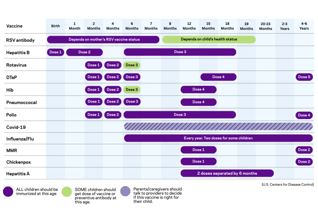 “The most recent exciting news in vaccines came in 2023, when two new methods were approved to help babies avoid respiratory syncytial virus, or RSV,” Dr. Kainth says. RSV typically feels no worse than a bad cold for adults, but it’s the leading cause of hospitalization in kids under 2.