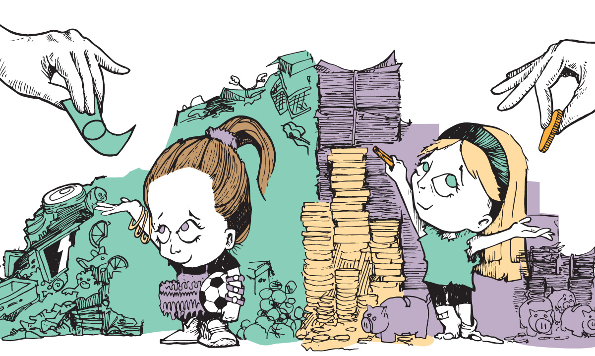 So they asked children ages 5-10 to look at two different characters who said things like, “Saving money makes me feel good” and “Spending money makes me feel good.” Kids then told researchers which character looked more like them.