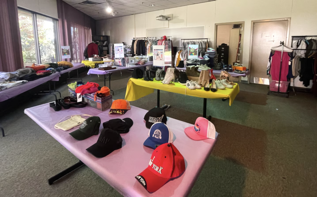 A room on the first floor of the school looks like a clothing boutique, except the clothes “for sale” are all marked “100% free.” Kids can grab the things they need to show up to school, like winter coats, gloves, and new shoes.
