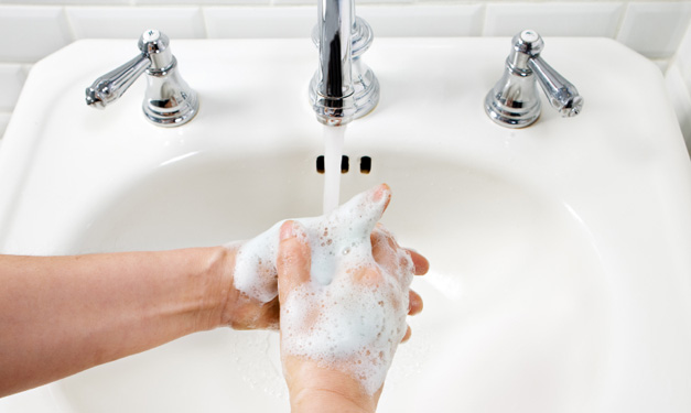 2. Keep it clean. Turn on the faucet and get the soap sudsy after dirty tasks like nose wiping, diapering and toileting. Wash up before and after eating, too. Don’t forget instant hand sanitizers! They kill up to 99.99 percent of germs, and the antiseptic sorts don’t allow resistance to build up.