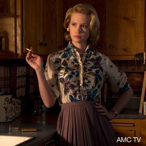 It’s often hard to tell who’s the kid and who’s the mom. Short, snappy and emotionally immature with her three rug rats – especially oldest Sally – this ’60s era mom from Emmy-studded AMC original series Mad Men is colder than an iced-up cocktail. Typically terse, the former model mom barks a barrage of commands (“Stop it.” “Go upstairs.” “Go watch TV.” et al) at the little people she’d rather see and not hear – often with cigarette in clenched lips.