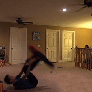 Let us set the scene for you. Mom comes home to dad playing upstairs with their son – who is dressed like Spider-Man. Unbeknownst to mom, their other son has hidden a dummy in a Spider-Man costume in the room next door. Mom checks out the game and heads downstairs to get Atwood some water, just in time to hear dad ask his son if he'd like to fly.