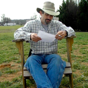 In it, Jordan sits down in a wooden chair, set against a grassy background, cigarette in one hand and a piece of paper in the other. He then chats up his video camera.