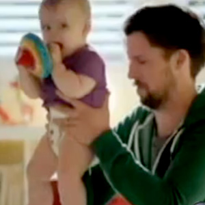 "How did Huggies products hold up to daddyhood?" the voiceover asks. It's not quite Three Men and a Baby, but you get the picture.