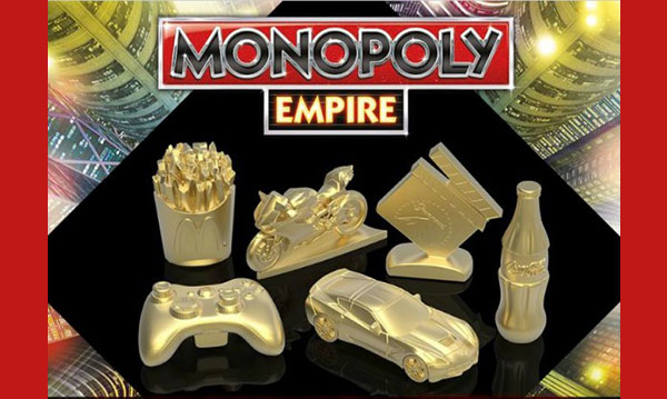 And there’s more: The Monopoly Empire game “iconic” name-brand tokens like an Xbox controller or an order of McDonald’s fries. To boot, Empire spaces are filled with brands like Coca-Cola, Samsung, Nerf, eBay, Fender, Nestle and more.