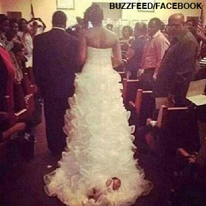 According to MyFox Phoneix, when the photo of the bride and baby hit the web, many were outraged and some felt Carter-Brooks should be reported to Child Protective Services for putting her 1-month old daughter in the train of her gown.