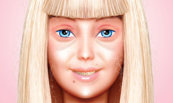 Well, the once-flawless blonde just got an all-natural makeover, thanks to Imgur user Eddi Aguirre. Aguirre posted a photo on Imgur of a makeup-less Barbie, complete with under-eye bags, zits, freckles, braces, stubby eyelashes, frizzed hair, yellowed teeth and shiny skin.