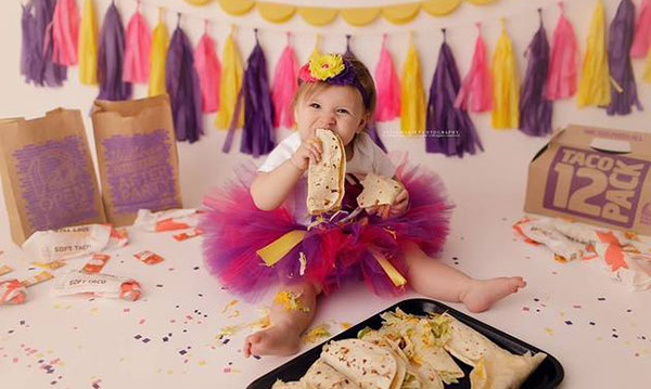 The photographer for the special event, Julia Marie, wrote on Facebook, “Anyone who knows me knows how much I LOVE tacos! I could eat them for every meal… seriously! So you can only imagine just how excited I was to find out that Delta’s mom wanted to do a Taco Bell themed first birthday smash with tacos!”