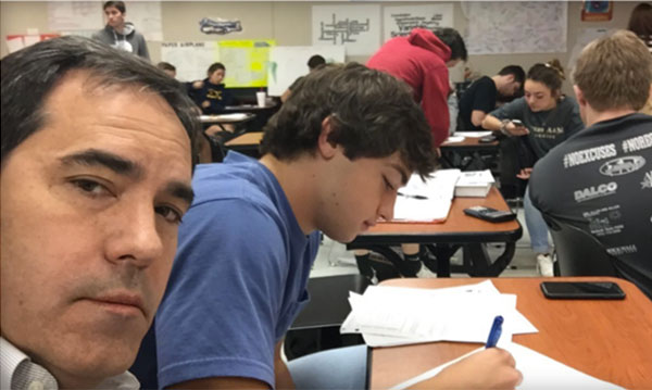 Brad Howard of Rockwall, Texas, however, decided to step back in time and sit in on his son’s physics class to teach him a modern-day lesson.