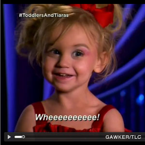 In a video snippet from the bizarre TLC reality show, you can spot numerous no-no's by coffee-wielding pageant mother Tori Hensley. She justifies her not-so-sage – or safe – parenting choices by declaring that her family doctor approves of the caffeinated beverage, considering it's only one (giant) cup a day. (I'd like to know where this "doctor" got his or her degree … ).