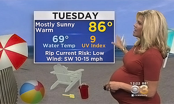 Katie Fehlinger, a meteorologist at the CBS 3 Philly news station in Philadelphia, recently took to social media to respond to viewers who have been attacking her pregnant appearance, Yahoo Parenting reports.