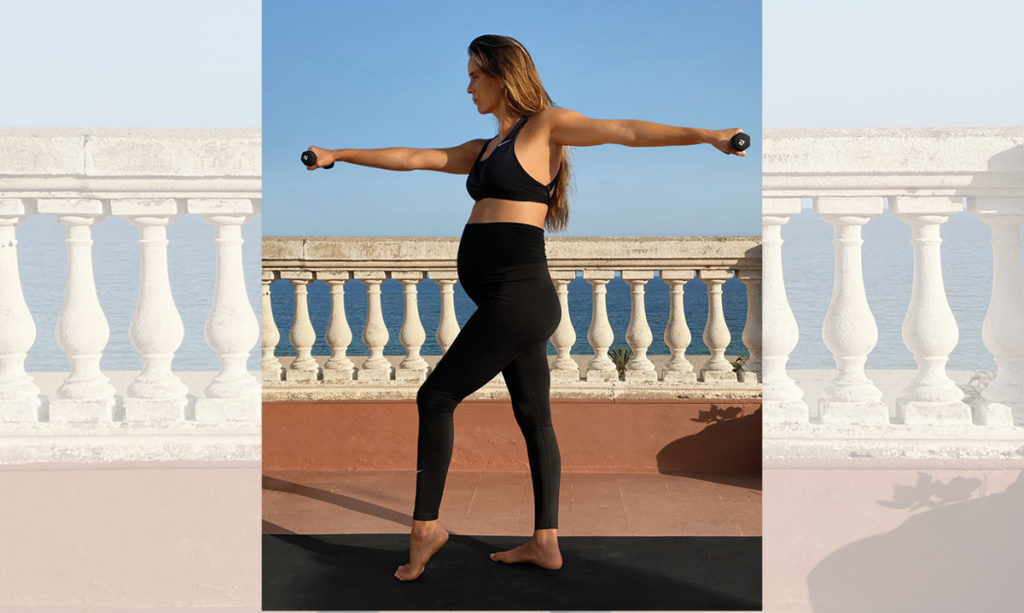 The tight features a longer waistband for full coverage if mom chooses and it keeps its contours to adapt to a mom’s changing body.