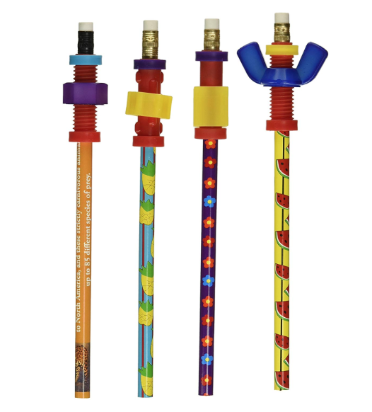 Sold in packs of four, these fidget-friendly pencils keep fingers busy. Each one has a different fidget near the eraser that can be taken off and moved onto another pencil. The cool designs feature a wing nut plus nut-and-bolt pencils — along with two others. Check them out on Amazon for under $10 a pack.