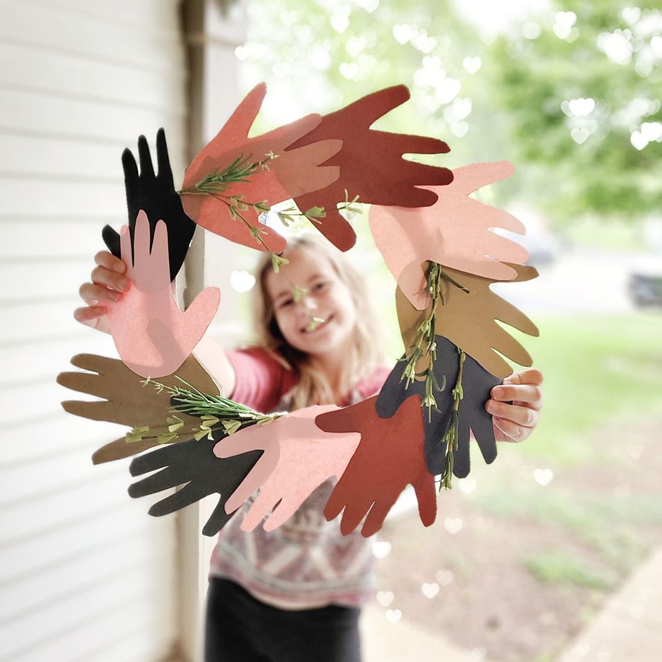 This wreath features handprints cut out with multi-cultural construction paper. You can hang up the craft on your front door for everyone to see the powerful message or even pair it with a Black Lives Matter sign.