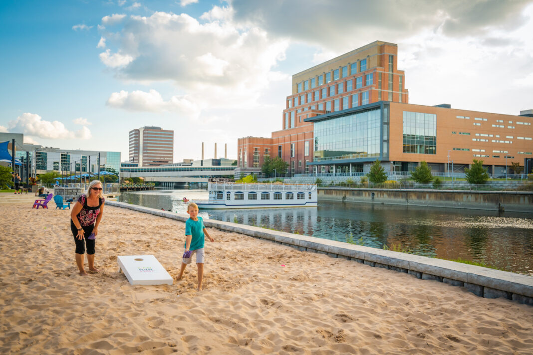 - All ages find something to enjoy along the Lansing River Trail, which connects parks, historic sites and other sites along 17 paved miles as it winds along the banks of the Grand and Red Cedar rivers. An ideal spot for strolling, biking and inline skating, the trail passes right through Lansing’s downtown and new urban beach at Rotary Park. Keep an eye out for creative installations that line the trail as part of the ARTpath project.