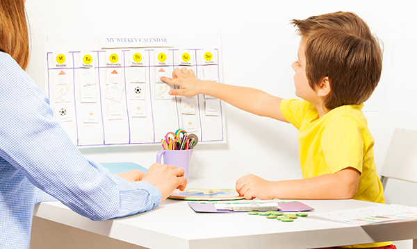 “You can make them more complex if you need to by having the day’s schedule written out hour-by-hour, or it can be a lot simpler by using generic pictures to indicate the activities,” she says, like a snack.