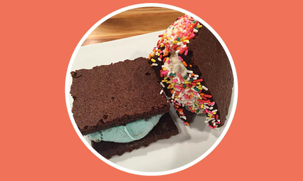 - Top one brownie with a 2-to-3-ounce scoop of Browndog ice cream. Place the other on top. Repeat to use up remaining brownies, serve and enjoy.