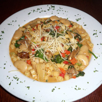 I would recommend the fagioli calabrese. This dish is very unique; it's something we came up with a few years ago and just started playing with since. It has butter beans, banana peppers, chicken stock, Italian sausage, white wine, cheese, and noodles. People may not be familiar with it, but 90 percent of those who try it fall in love with it!