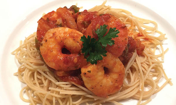 - Serve the shrimp over pasta and sprinkle with Parmesan cheese.