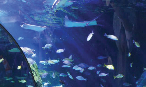 Much more: There’s a harbor of lobster and angelfish, a jellyfish area where kids can change the color of the tank (and jellies), seahorses and cownose stingrays, and a 360-degree tank of pilchard fish that swim one way and change direction suddenly.