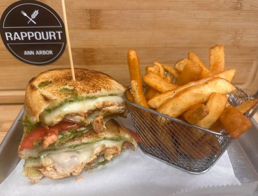 This spot has a pesto tomato grilled cheese, which is made with provolone and Fontinella cheeses, house-made basil pesto and tomatoes on sourdough bread. It’s served with fries.