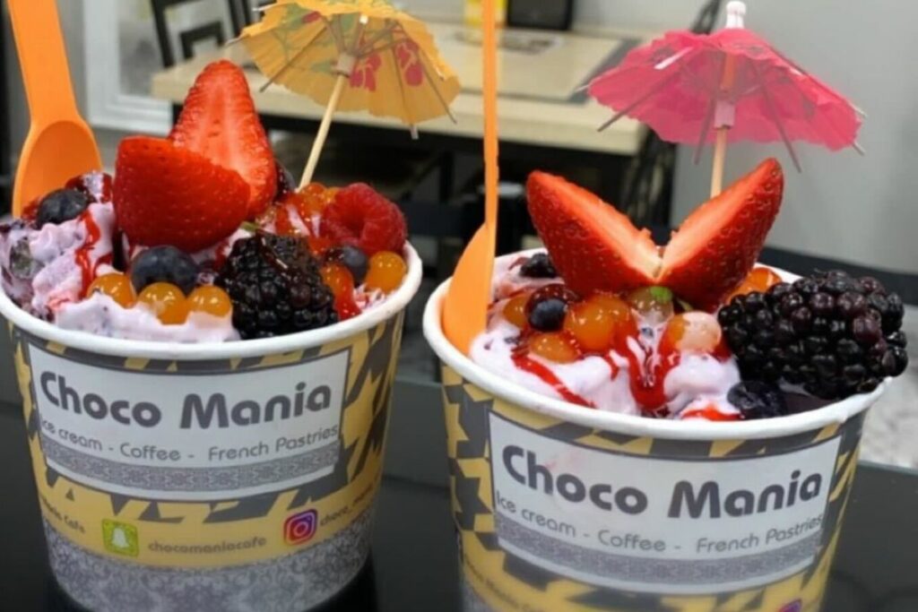 Choco Mania Cafe offers 17 milkshake flavors, but the Freakshakes take the cake — literally! These milkshakes are topped with a cupcake, then topped with a scoop of ice cream and some of the cafe’s signature toppings. Choose from Choco Mania, Biscoff, Oreo, Kinder or strawberry banana.