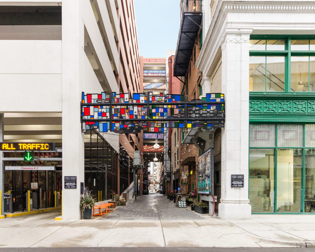 Located in the heart of downtown, the Belt redefines what an alley can — or should — look like. Captivating artwork, plants and brightly colored benches, twinkling lights and public art fill the small space, packing so much Detroit art and culture into what could have been just another alley.