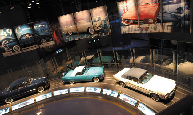 Its three themed floors also host technology demos, interactive kiosks and cars galore – more than 65 antique, custom and concept vehicles, in fact.