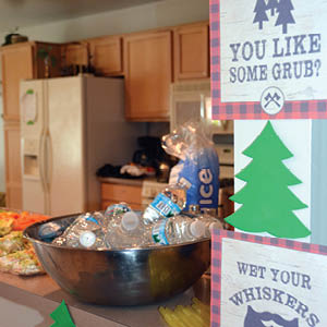 The tree-stump cake was a highlight. “Everyone was surprised by the plaid cake center,” says Kliemann, who grabbed the idea from Sugar Geek Show on Facebook. A sign also queried, “Wood You Like Some Grub?” – including pulled pork sandwiches, coleslaw, veggies, chips and other brawny goodies.