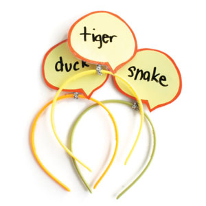 Have you played the Botticelli guessing game? You ask others questions to find out your “identity” – which is pre-written and attached to you in a place you can’t see it, but others can. Like these headbands! Basic animals and people are great subjects for younger kids. They can ask, “Do I have feathers?” or “Do I have a tail?” as they try and figure it out.