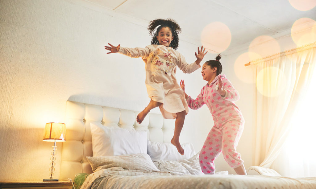 Grab your cozy pajamas, rent a movie and treat the kids to the ultimate slumber party. Start with a good old-fashioned pillow fight, tell ghost stories, and then challenge your kids to build an epic fort to spend the night in. I once mistakenly agreed to let my children use whatever they wanted to make their fort, and they chose to inflate our jumpy house in the middle of the family room.Â